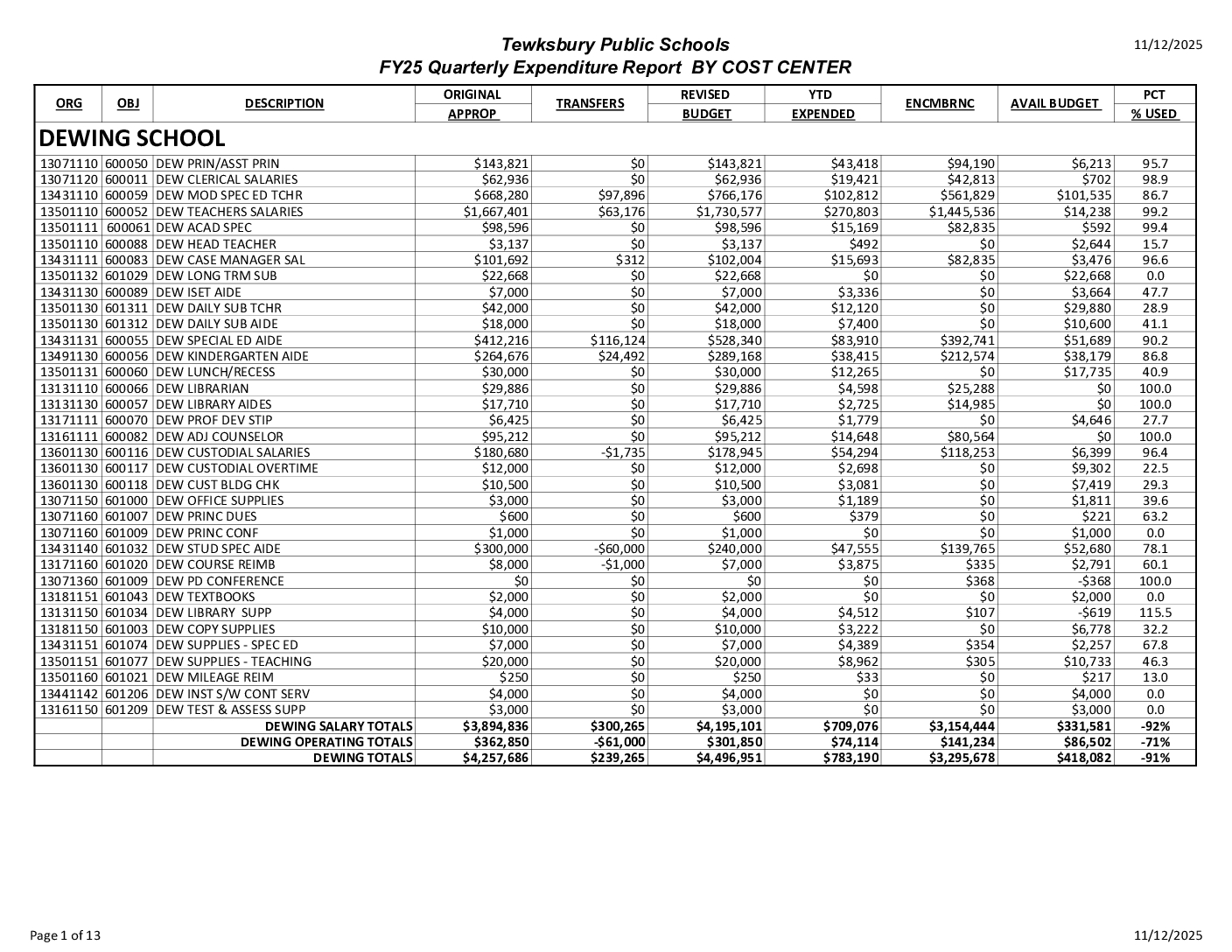 2-FY26 QUARTERLY REPORT BY COST CTR – Q1