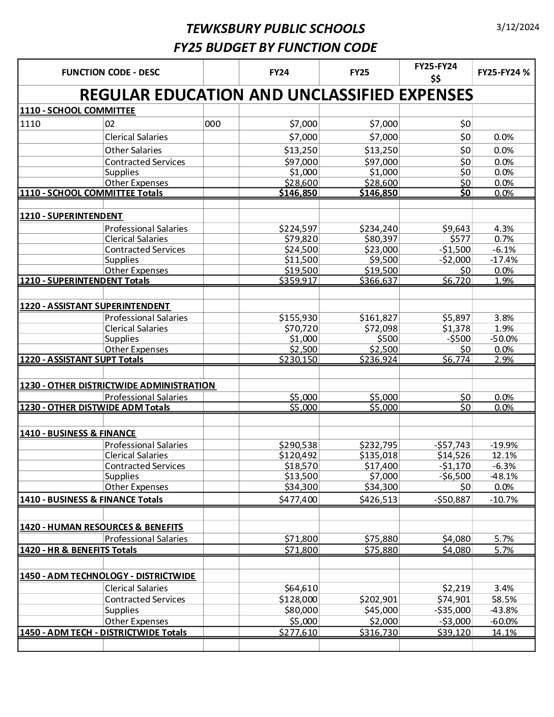 FY25 BUDGET SUMMARY BY FUNCTION CODE 3-13-24